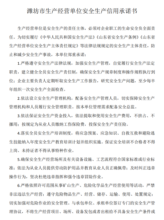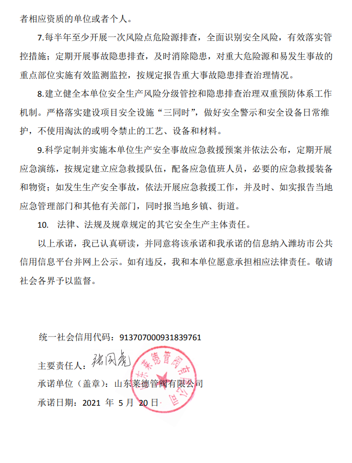 萊德管閥作(zuo)出安全生産信用(yòng)承諾